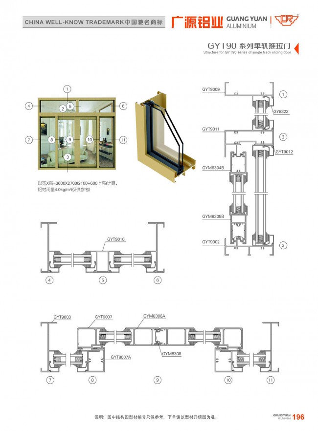 GYT90系列单轨推拉门